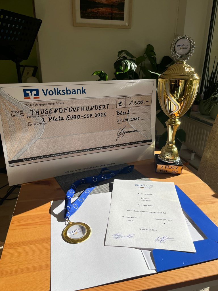 Genau sechs Wochen nach der erstmaligen Teilnahme am „World Music Contest“ im niederländischen Kerkrade bewies das Sinfonische Blasorchester Wehdel erneut sein großes musikalisches Können. Nachdem die Wehdeler in Kerkrade mit 82,5 Punkten eine Goldmedaille erhielten, brachte ihnen die vierte Teilnahme an den „EURO-Musiktagen“ in Bösel erneut eine Goldmedaille sowie zwei Pokale. Die 70 Amateurmusiker gewannen mit der hervorragenden Gesamtpunktzahl von 118,4 von 120 Punkten nicht nur in der Orchesterklasse, sondern holten auch den Gesamtsieg. Dirigent Thomas Ratzek wurde für seine großartige Orchesterleitung mit dem Dirigentenpreis belohnt. In vorigen Teilnahmen am Wertungsmusizieren in Bösel konnte bereits einmal der Tagesgesamtsieg sowie zweimal der zweite Platz erreicht werden.