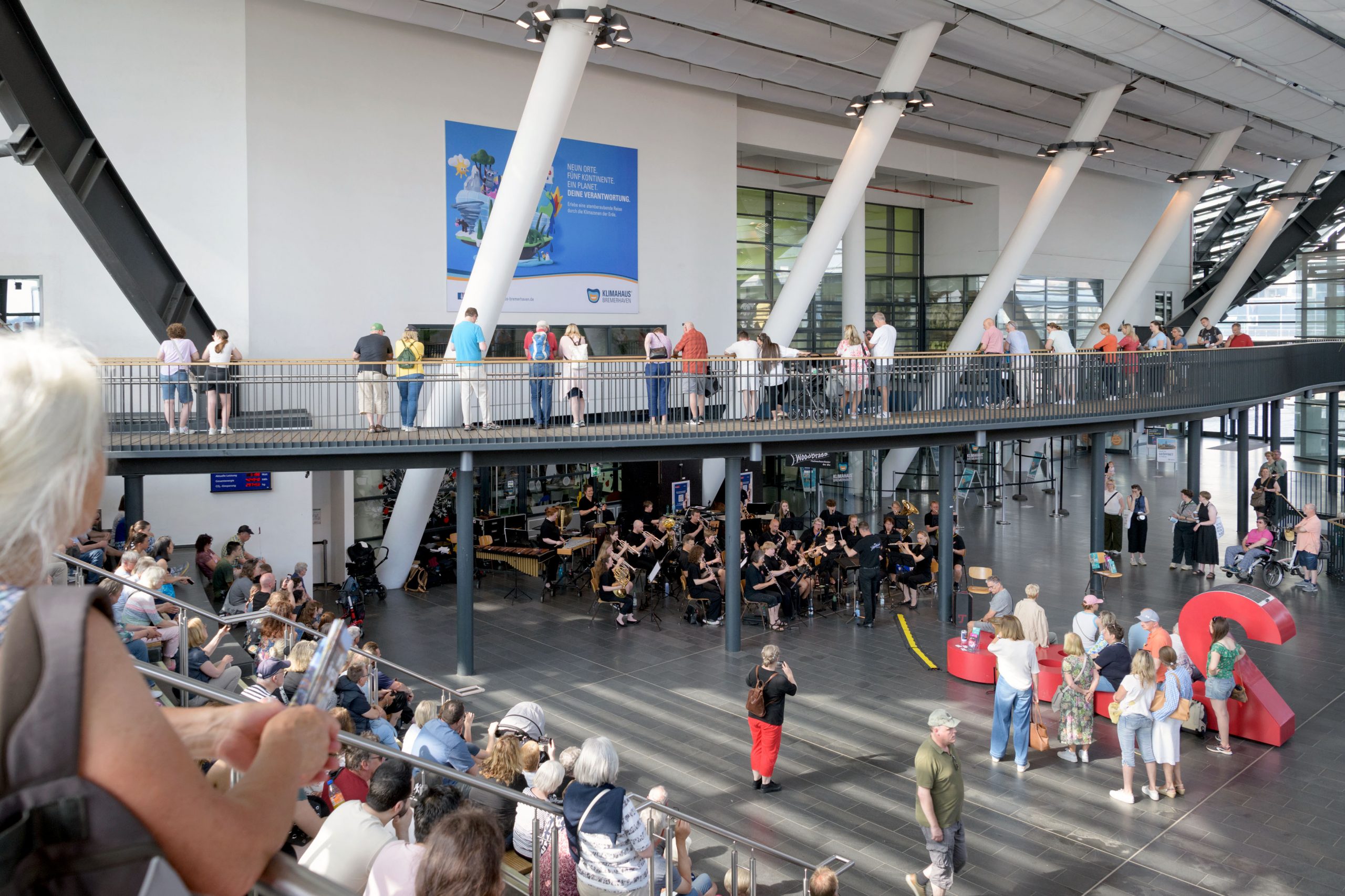 Das zahlreiche Publikum zeigte sich begeistert von unserem abwechslungsreichen Programm, das unter anderem Eighties Flashback im Arrangement von Paul Murtha, das Medley Disney Film Favorites (arrangiert von Johnnie Vinson) und Katy Perry‘s Firework (arrangiert von Michael Brown) beinhaltete. Viele der Stücke hatten wir bereits bei unserem Klangfeuerwerk in der Alten Kirche präsentiert – und es war schön, sie nun in ganz anderer Atmosphäre noch einmal zu spielen.